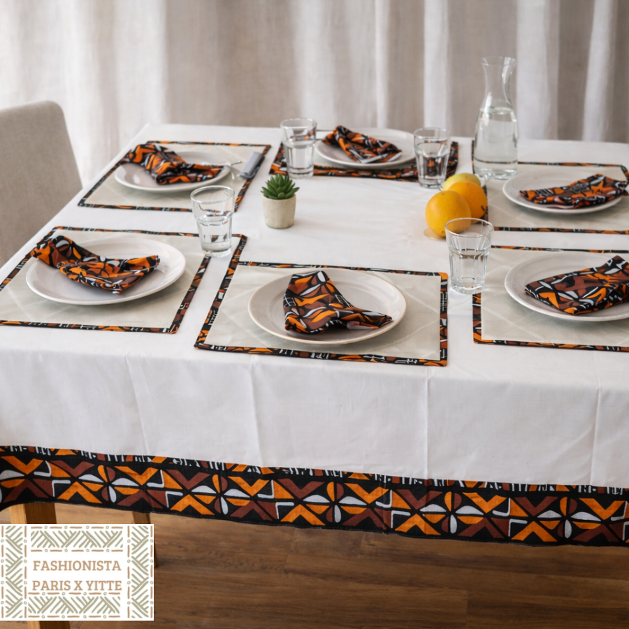 Ensemble de table africain en wax – Table 6 personnes – 14 pièces