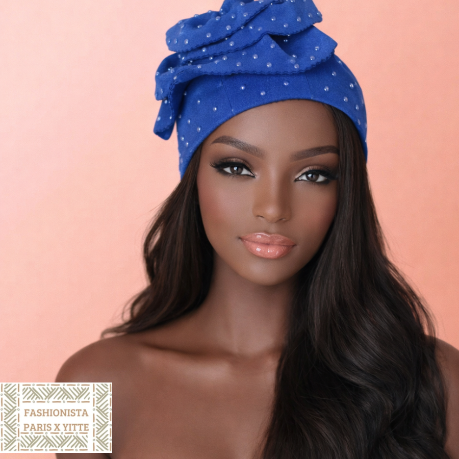 Bonnet orné de perles et broche
