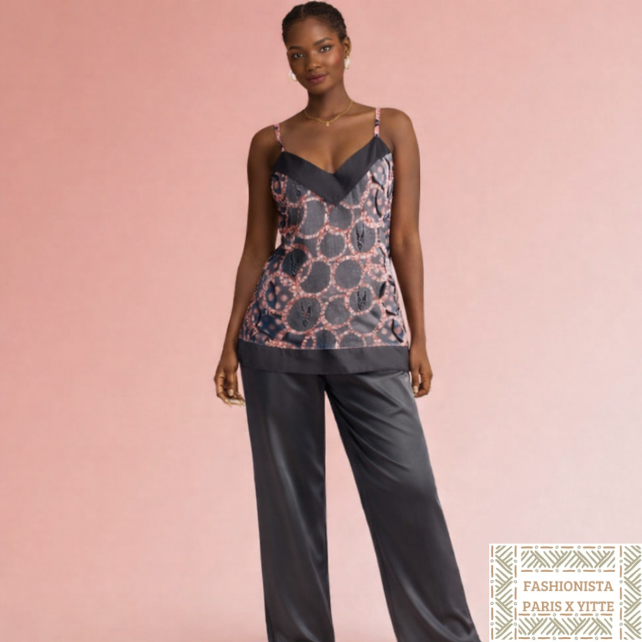 Ensemble pantalon soie imprimée et satin