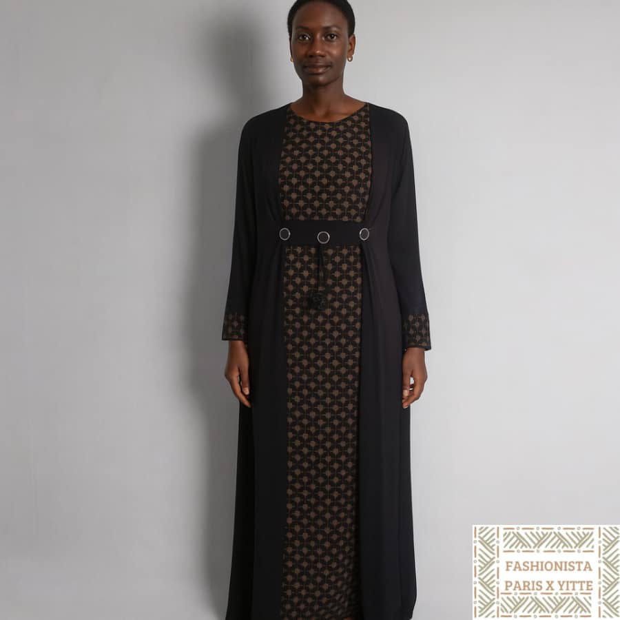 La Djellaba/Abaya Noire et Dorée est une pièce raffinée qui ajoutera une touche d’élégance à votre garde-robe. Son design sophistiqué et ses détails soignés en font un choix parfait pour les occasions spéciales où vous souhaitez vous démarquer avec style.
