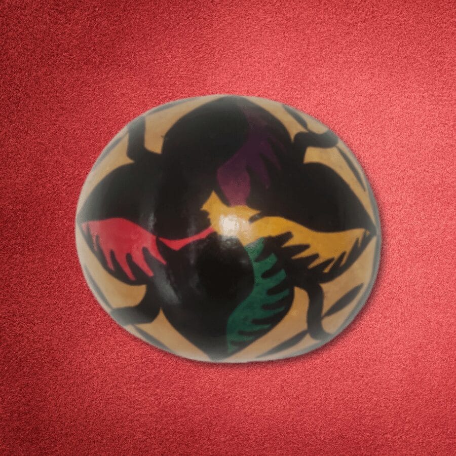 La gourde est vidée et séchée au soleil avant d’être travaillée. Ce sont les graines, que l’on conserve, qui produisent le son clair de qualité que l’on obtient lorsqu’on agite l’instrument.