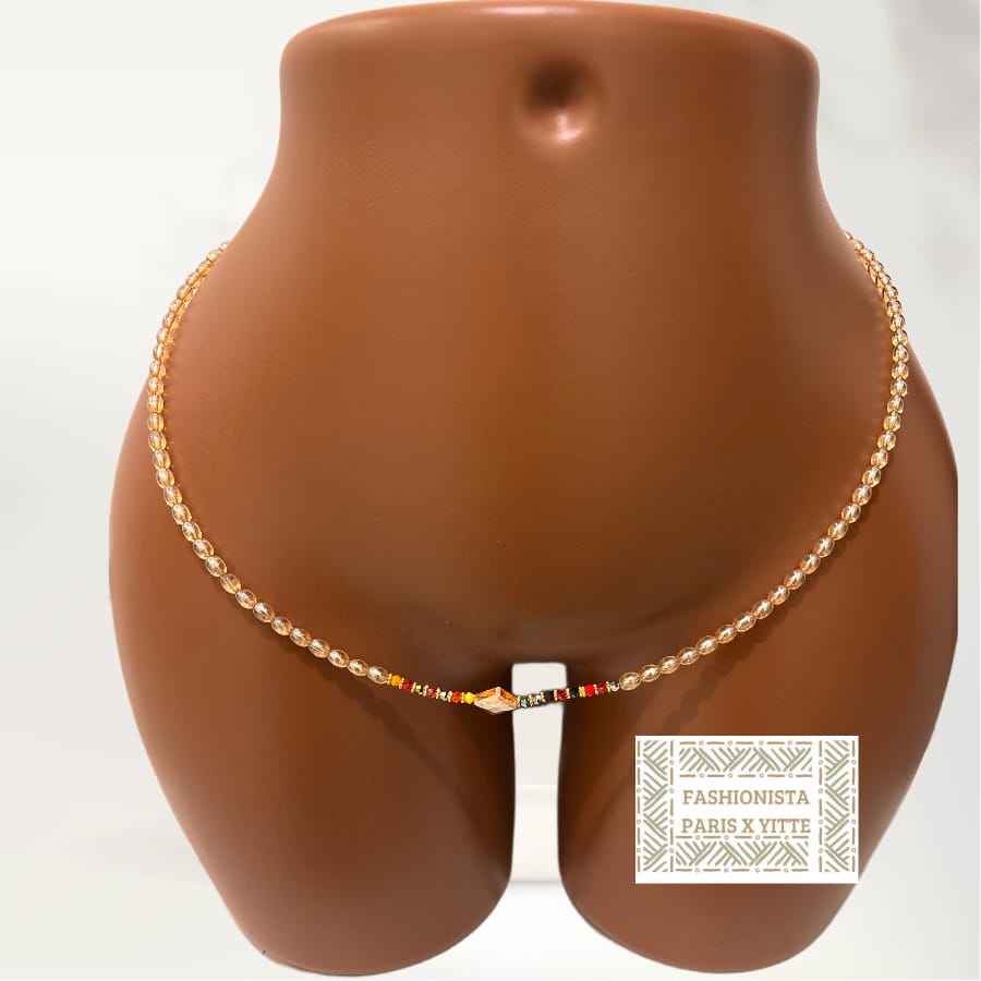 - Sous une robe : Ajoutez une touche secrète de sensualité en portant la chaîne sous une robe fluide ou un pagne.