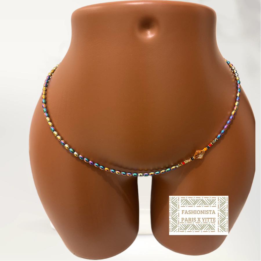 - Sous une robe : Ajoutez une touche secrète de sensualité en portant la chaîne sous une robe fluide ou un pagne.