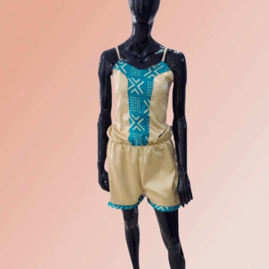 - 1 Combi-short en soie imprimée wax et satin