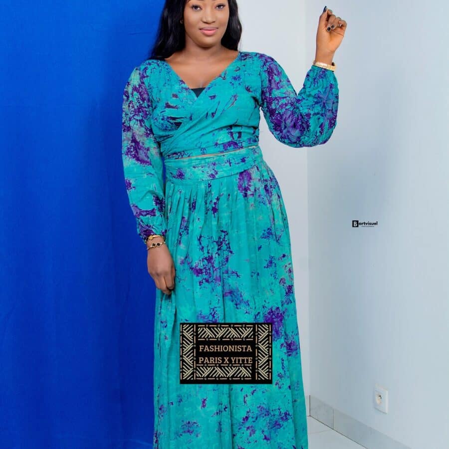 Optimisez votre garde-robe avec une pièce qui combine tradition et modernité. L’ensemble jupe portefeuille et haut cache-cœur en Koko Dunda est plus qu’un vêtement, c’est une déclaration de style et de culture.