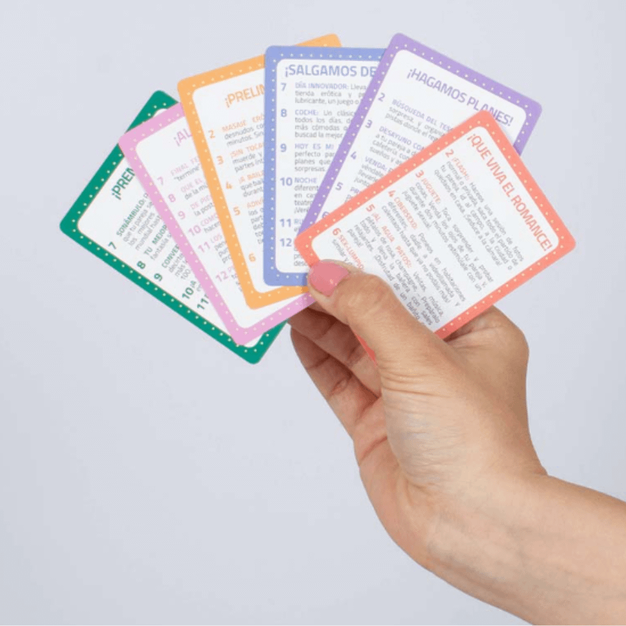 Dans “VIVE LA ROMANCE” vous avez des tests plus romantiques, avec “FAISONS DES PLANS” vous aurez les aventures les plus sensuelles, “QUITTONS LA MAISON” vous permettra de casser la routine quotidienne de votre couple. Les actes les plus sexuels se trouveront dans “PRELIMINAIRES” et “AUX FAITS” et finalement, celui qui recevra un “PRIX” bénéficiera des récompenses les plus chaudes.