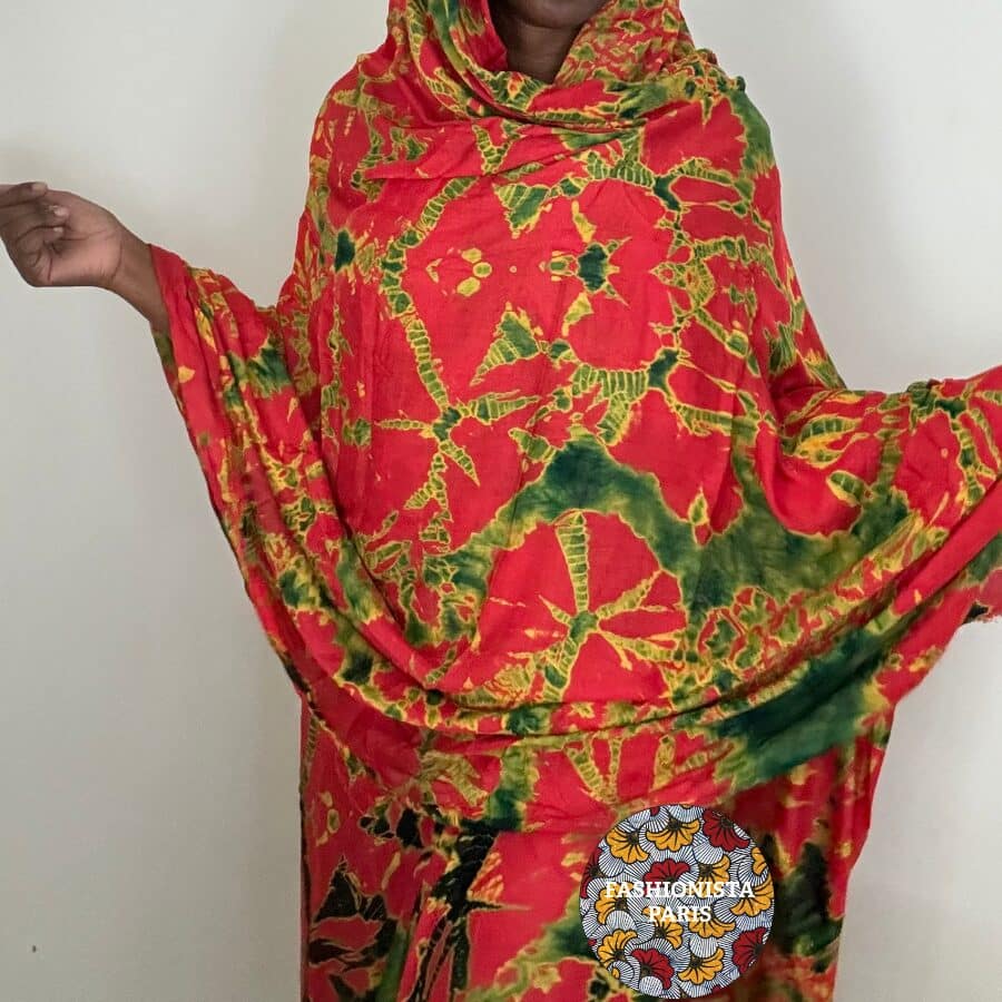 La melhfa, dérivée du mot arabe « lahafa » signifiant couvrir, est une étoffe de 3,50 m qui s’enroule autour du corps, utilisée autrefois par les femmes du Sahara pour se protéger de la chaleur. Aujourd’hui, ce vêtement traditionnel se modernise avec des couleurs unies, des motifs variés, et des effets tie and dye pour tous les goûts.