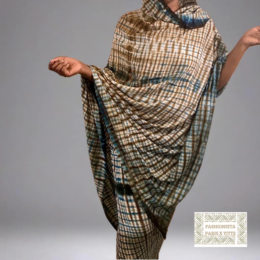 La melhfa, dérivée du mot arabe « lahafa » signifiant couvrir, est une étoffe de 3,50 m qui s’enroule autour du corps, utilisée autrefois par les femmes du Sahara pour se protéger de la chaleur. Aujourd’hui, ce vêtement traditionnel se modernise avec des couleurs unies, des motifs variés, et des effets tie and dye pour tous les goûts.