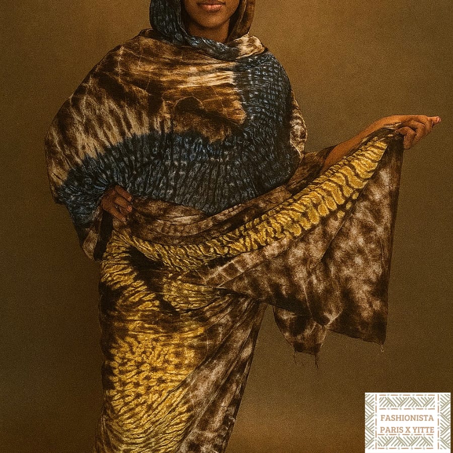 C’est un morceau de tissu d’environ 3,50 m qui s’enroule autour du corps de la tête aux pieds, les melhfa étaient autrefois principalement portées par les femmes du Sahara pour se protéger de la chaleur.