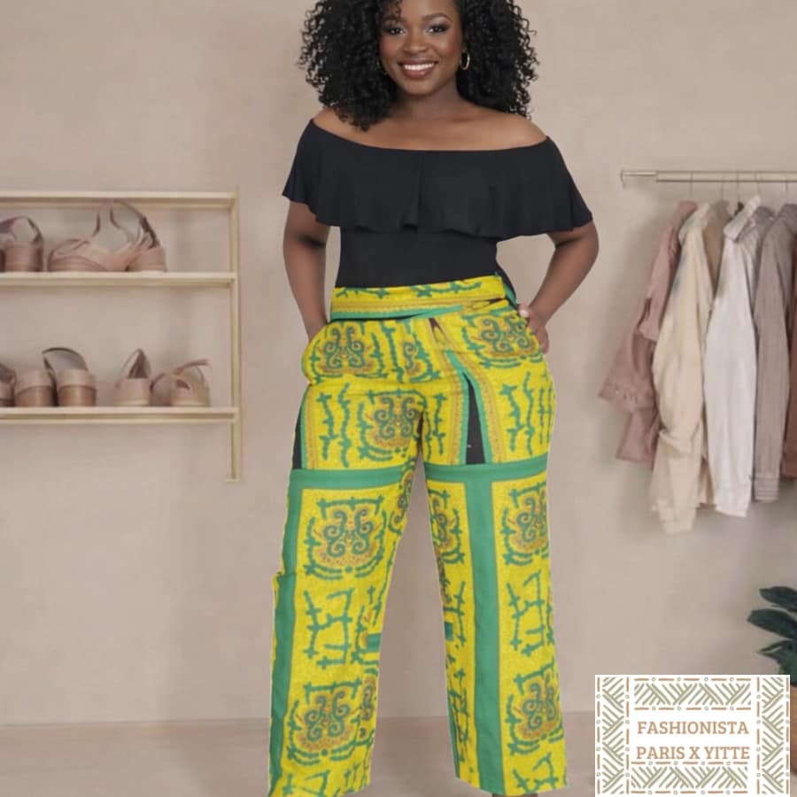 Le Pantalon Taille Haute en Wax est un indispensable pour toute garde-robe stylée. Avec sa taille haute flatteuse et son dos smocké pour un ajustement confortable, il est parfait pour toutes les occasions. Fabriqué à partir de tissu wax africain de haute qualité, ce pantalon combine durabilité et esthétique, offrant une option de mode à la fois pratique et élégante.