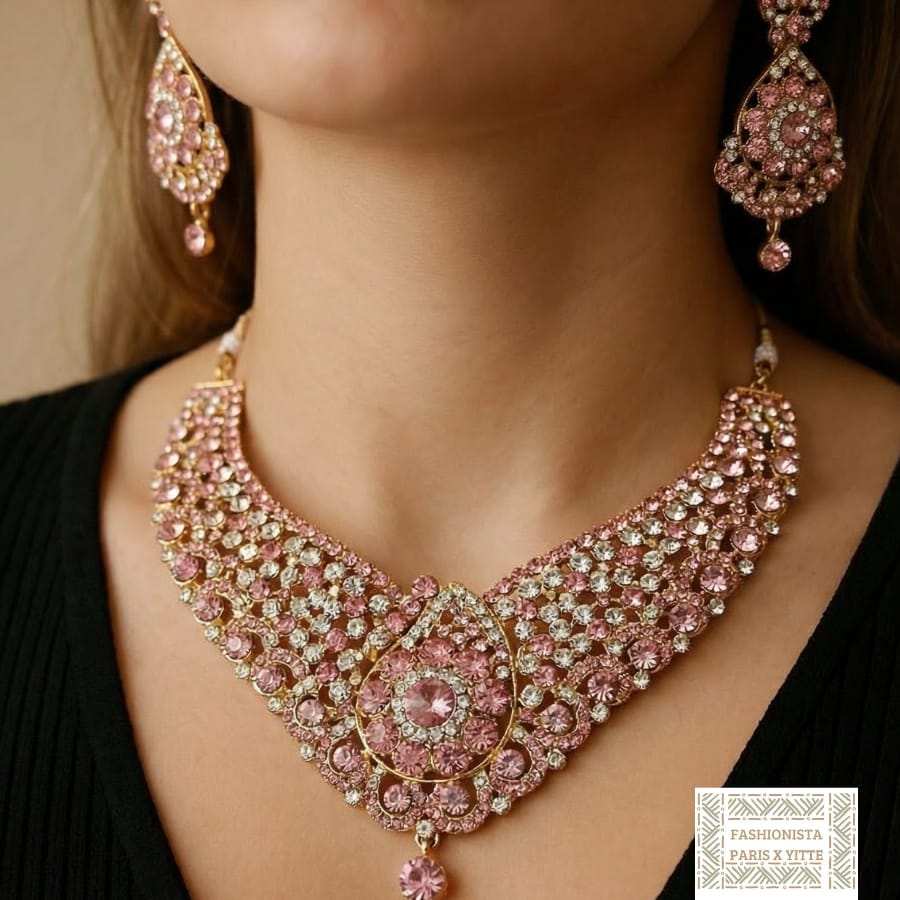 Avec son rose doux et féminin, cette parure illumine le visage et met en valeur toutes les carnations. Idéale pour compléter une tenue de mariage, un sari, un lehenga ou une robe orientale. Son design inspiré des bijoux royaux indiens en fait un accessoire de choix pour toutes les femmes en quête de distinction.