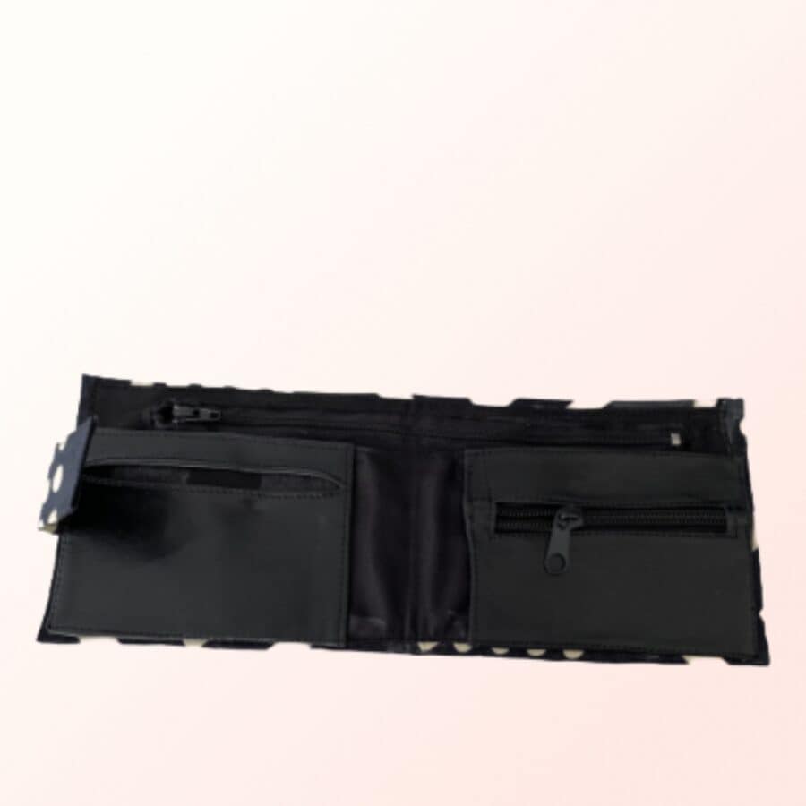 Découvrez notre Portefeuille en Wax, un accessoire chic et fonctionnel. Avec ses deux emplacements zippés, il est parfait pour organiser vos billets, cartes et pièces de monnaie.