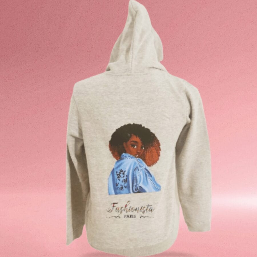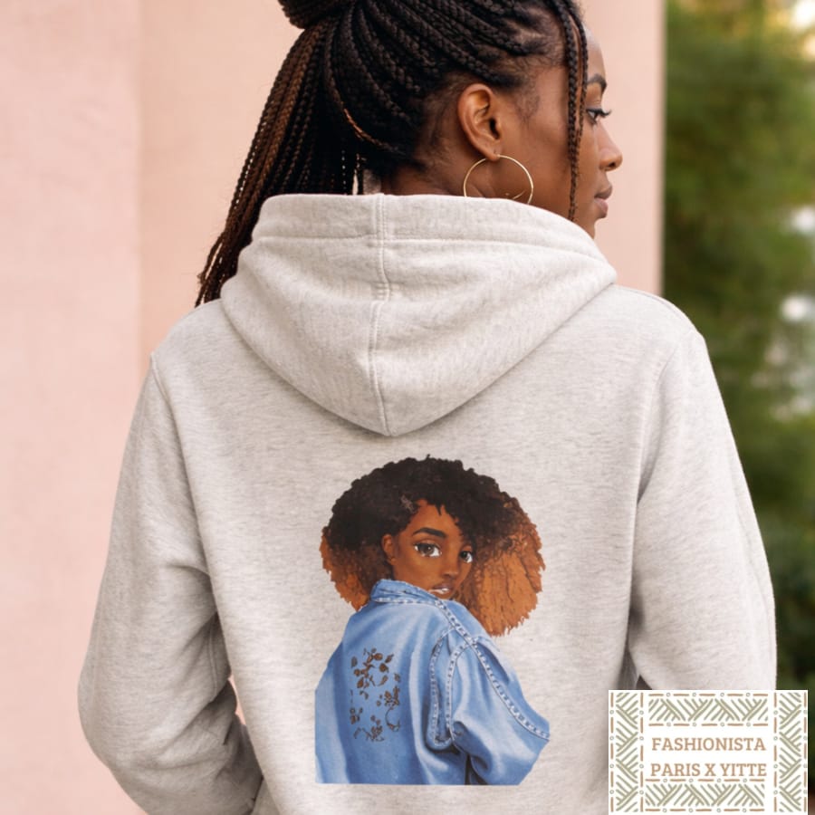 Ce sweat zippé à capuche arbore une élégante illustration “Afro Woman”, célébrant la beauté et la diversité.